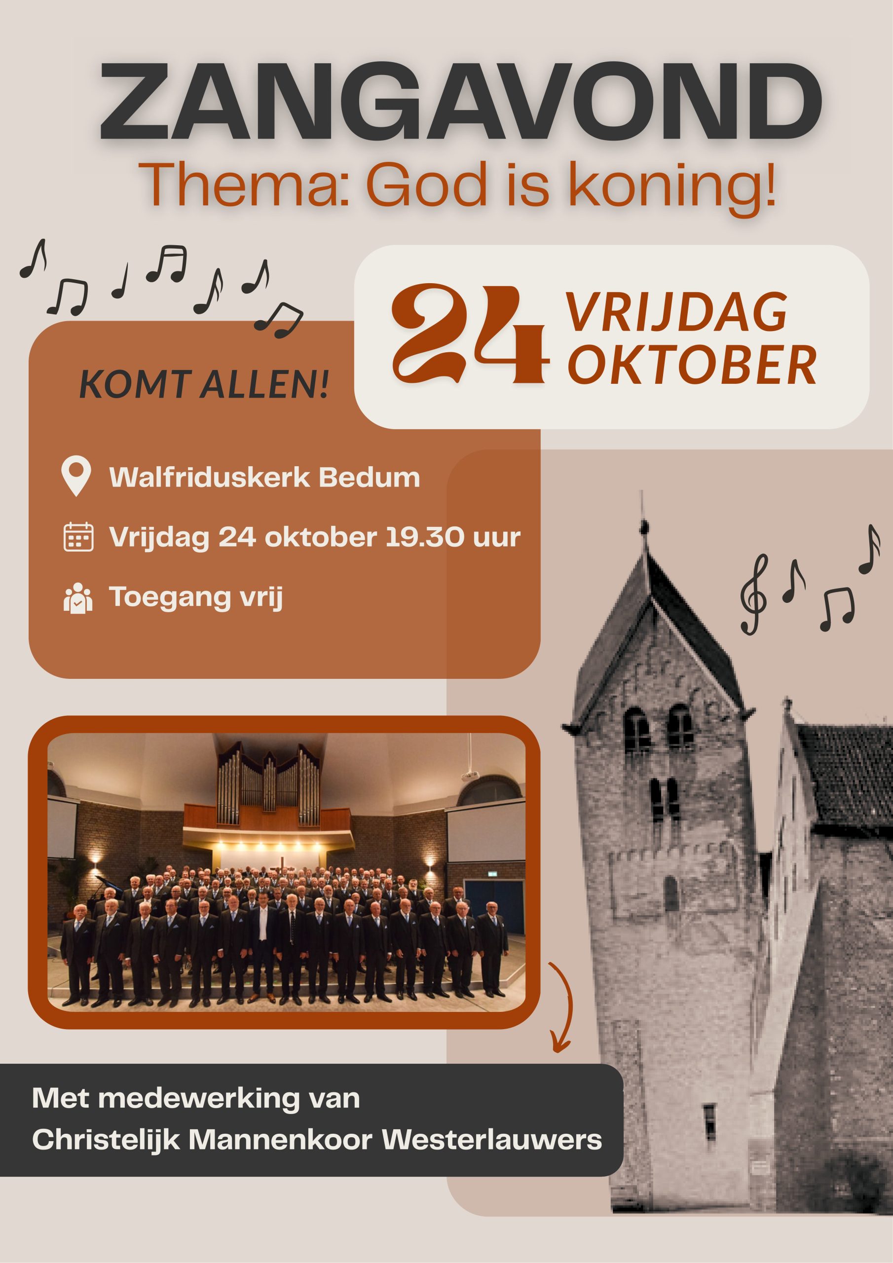24-10-2025 Walfriduskerk Bedum (GR) Koor & samenzangavond aanvang 19.30 uur